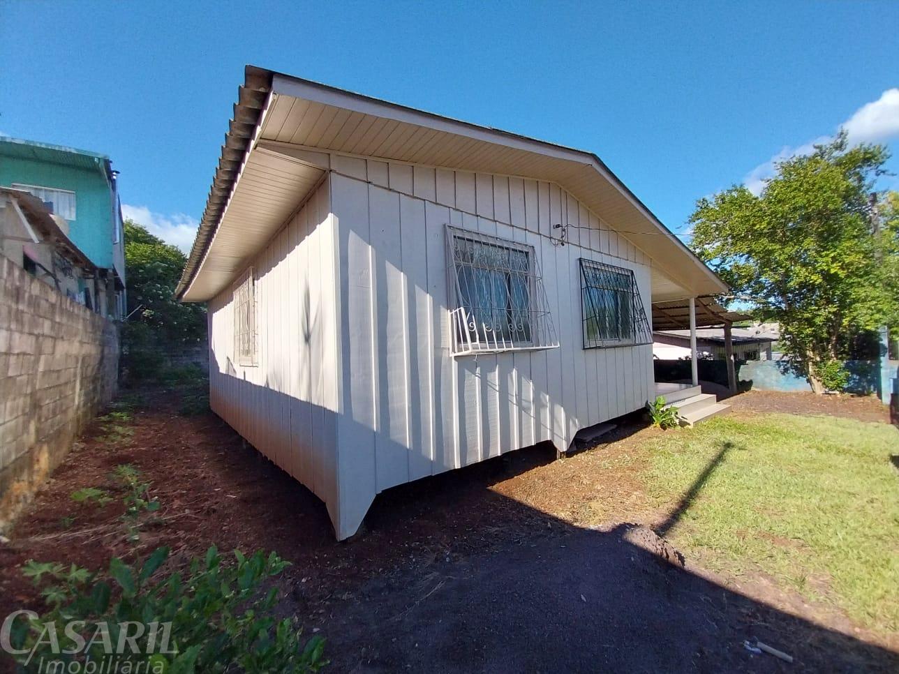 Casa de madeira aconchegante com 2 quartos, sala e cozinha conjugadas, banheiro e lavanderia.